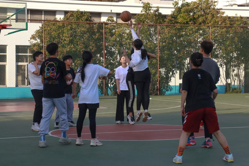 只知道网球和乒乓球可以男女混打,没想到篮球也能。10月24日和25日,教师教育学院在东门篮球场举行首届趣味篮球赛。比赛采取二男三女的混合组队方式,并且制订了相应的计分制度——男生进球得一分,女生进球得三分。
