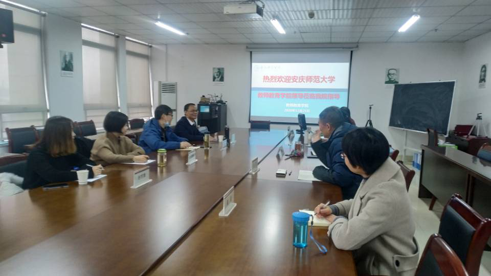 2020年11月25日上午,我院党委副书记许世平、小学教育专业负责人李义胜教授、王爱菊教授、赵雪微老师一人四人赴合肥师范学院教师教育学院开展业务交流学习活动。合肥师范学院教师教育学院党委书记穆娟、院长李群、副院长闫龙,以及小教专业部分教师参加了座谈。