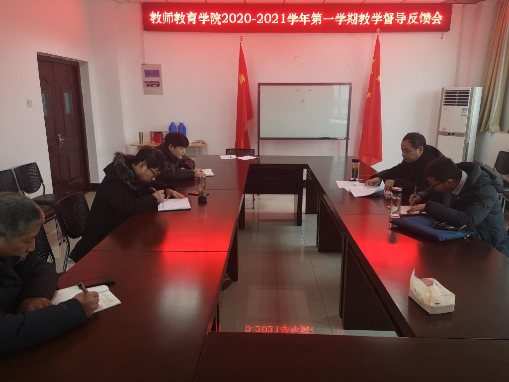 1月6日下午,我院召开2020-2021学年第一学期教学督导反馈会,校教学督导团督导员张启树、雒有谋出席会议并反馈意见。学院党委副书记许世平、团总支负责人方泽宇及教务科全体人员参加了会议。会议由许世平主持。