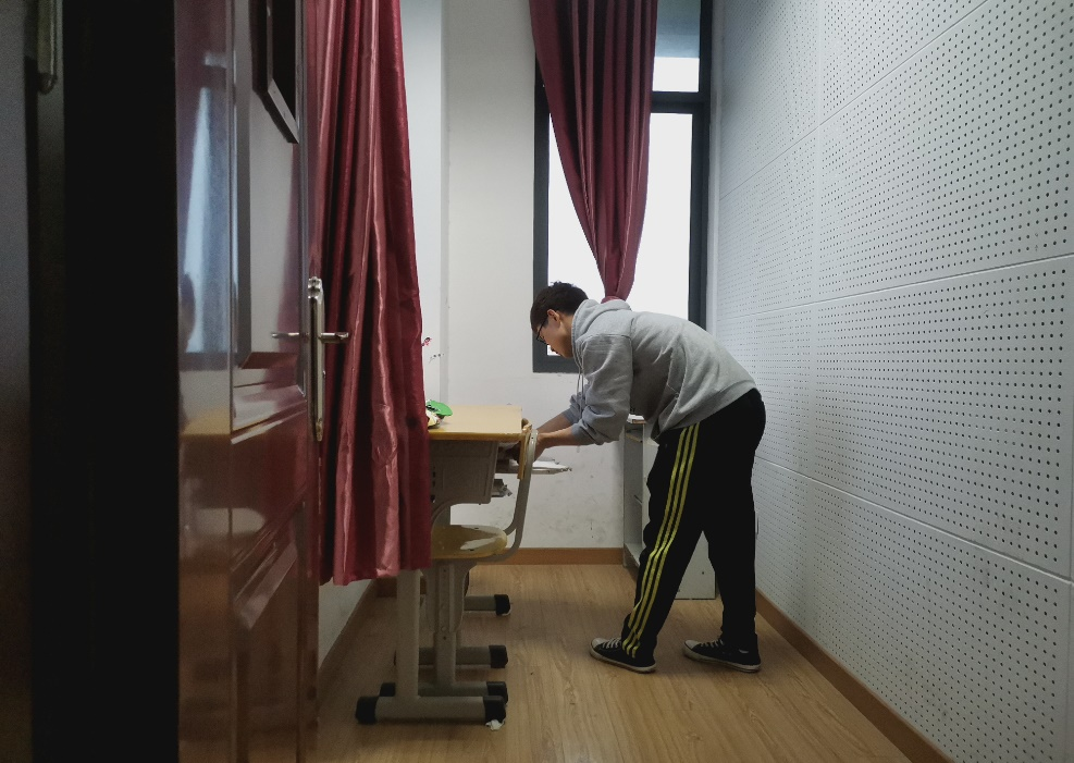 付能倩组织各位入党积极分子对办公室、教室、琴房进行卫生清扫,践行雷锋的服务精神。
