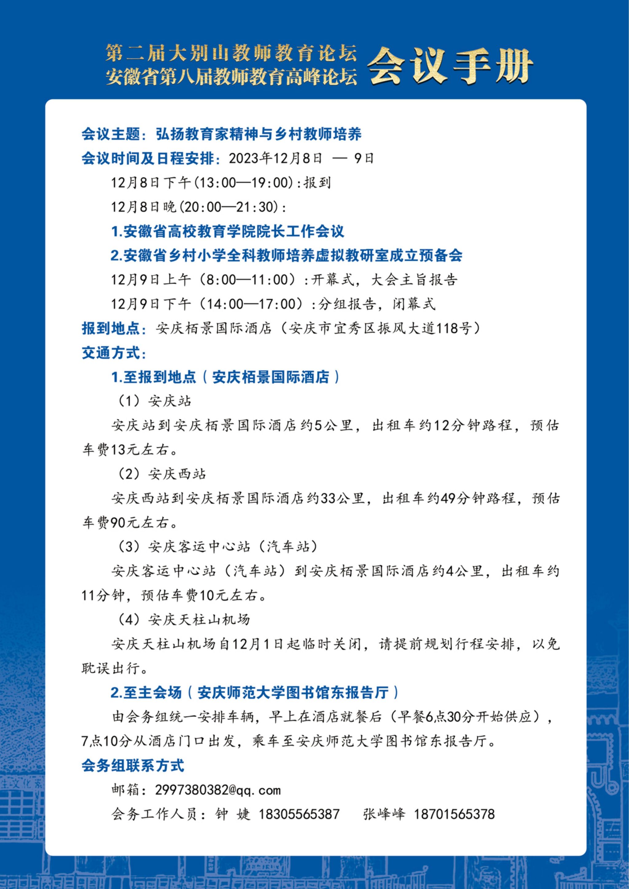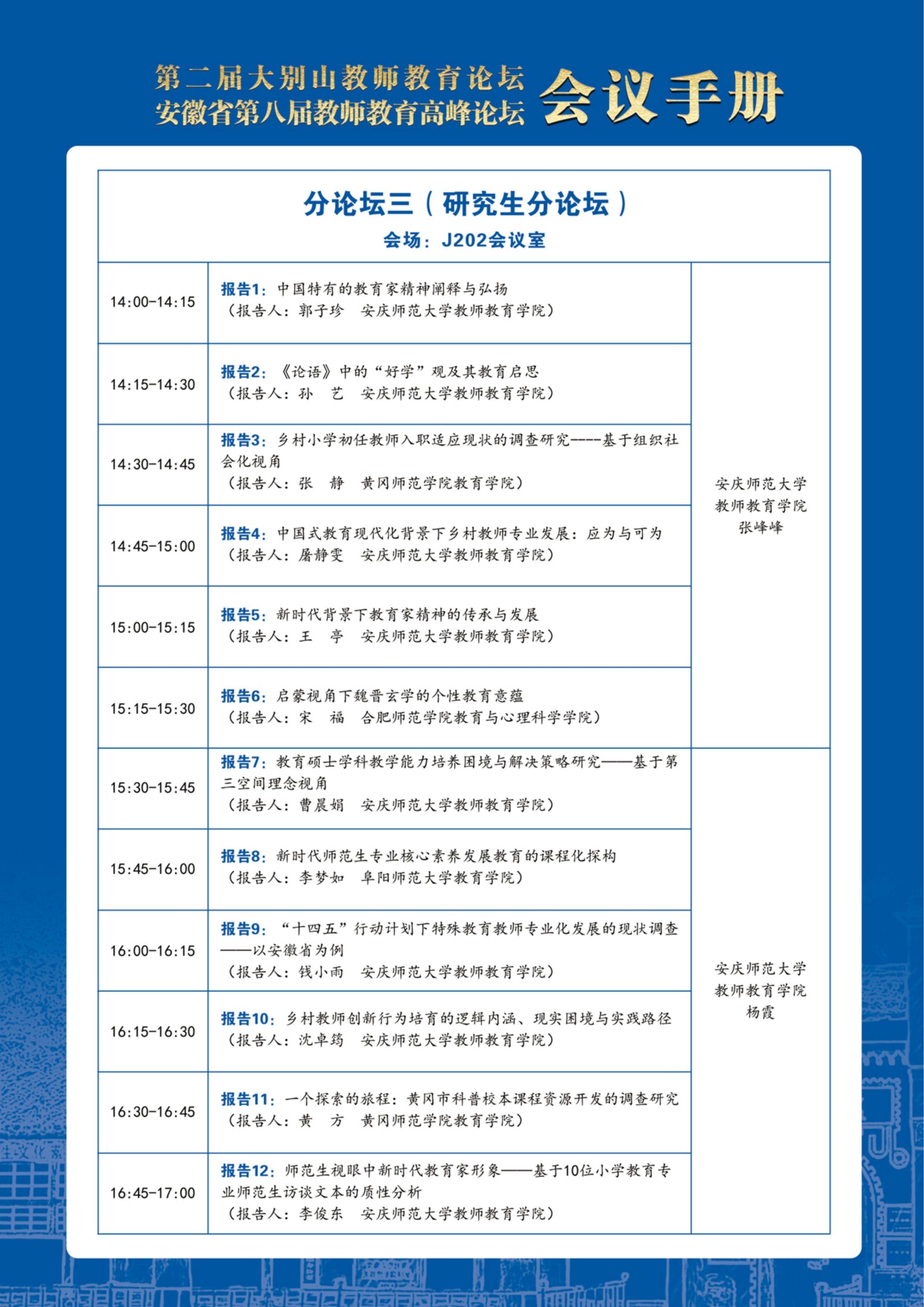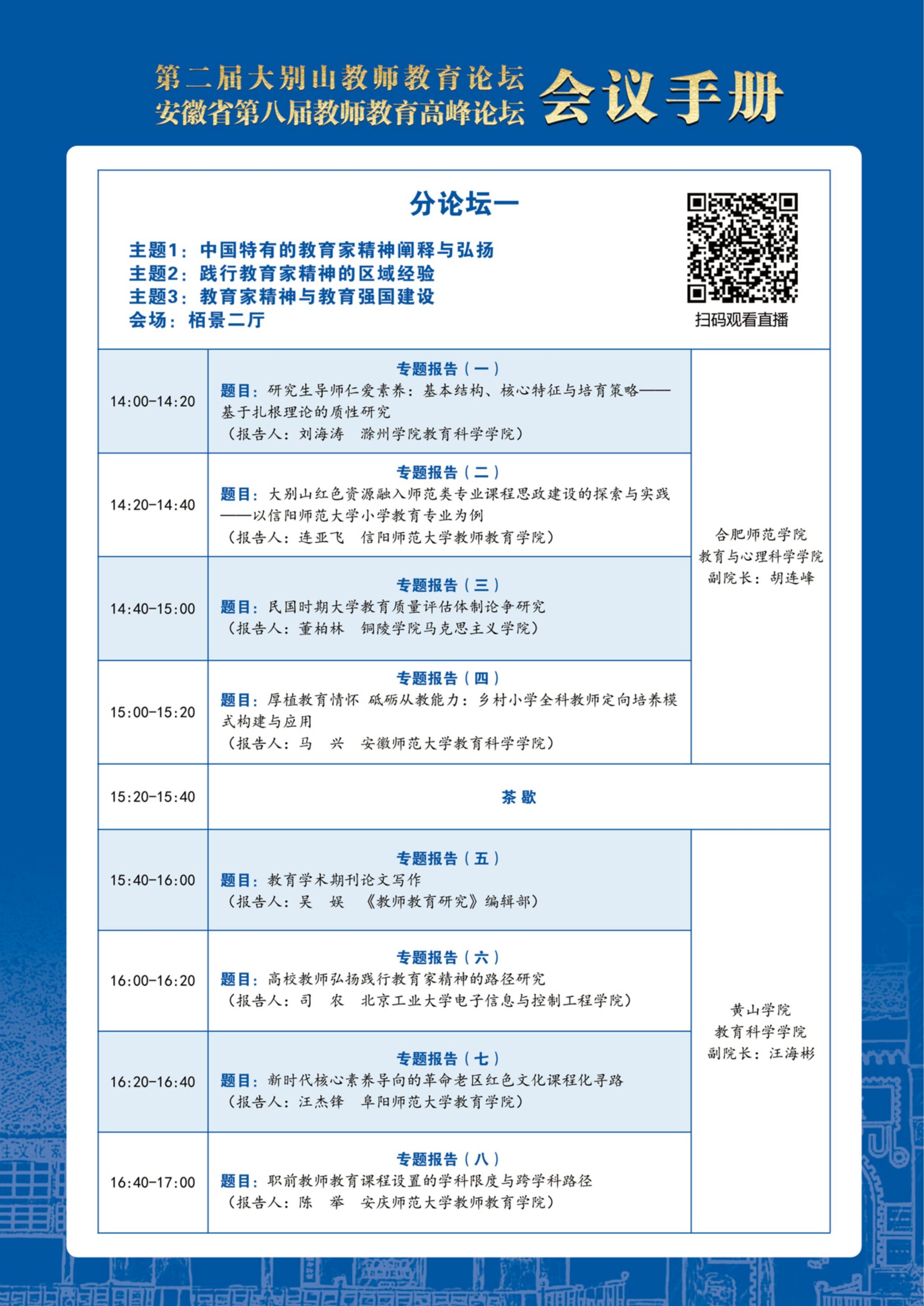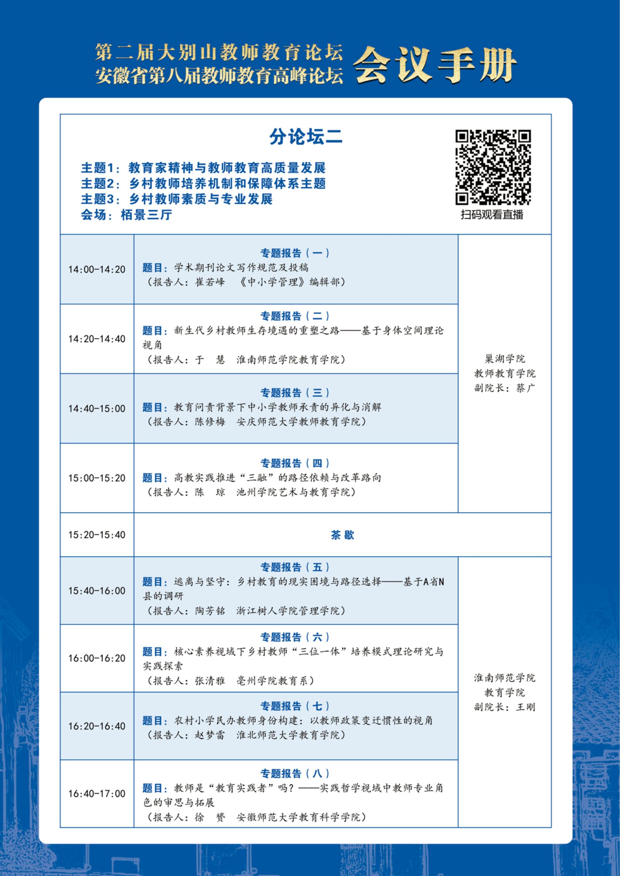 第二届“大别山教师教育论坛”暨安徽省第八届教师教育高峰论坛会议手册