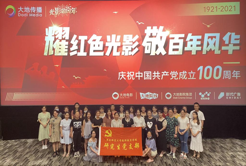 为深入开展党史学习教育,庆祝中国共产党成立100周年,7月3日下午,教师教育学院研究生党支部组织党员和入党积极分子开展党日活动,集体观看红色主题电影《1921》。