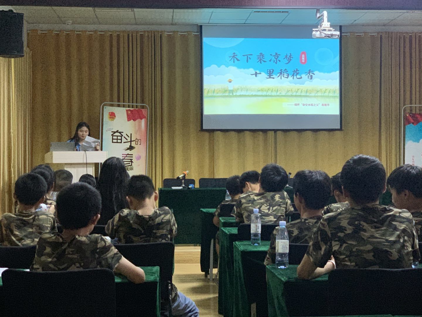 课上,实践队员深情介绍了袁隆平院士对中国乃至世界人民所做的贡献:“他一辈子把人民的粮食问题放在心上,为了人民的利益,为了实现‘禾下乘凉梦’和‘杂交水稻覆盖全球梦’,他勇于探索,勤于实践,坚持不懈地努力,这就是人生价值。袁爷爷就是天空中最闪亮的星,追星就要追袁爷爷这样的星,他就是我们成长的偶像。”