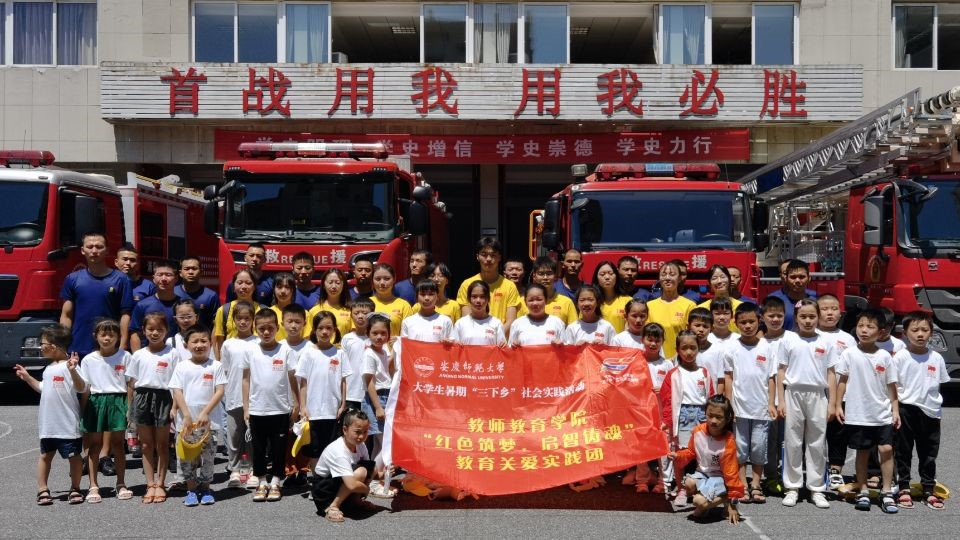 7月22日,我院“红色筑梦 启智铸魂”团队志愿者们带领芭社的小朋友走进安庆市迎江区消防大队,零距离体验消防生活,让孩子们更加直观真实地了解消防事业。