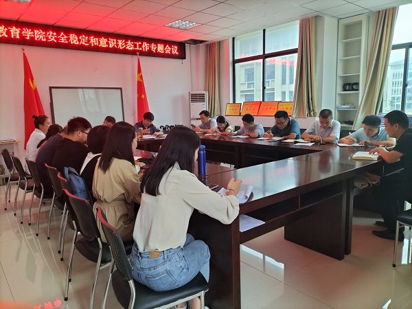 9月29日,我院召开安全稳定和意识形态工作专题会议。学院党政班子成员、全体专兼职辅导员、教师教育中心实习实训办公室主任、实验室主任等参加会议。会议由学院党委书记陈志超主持。