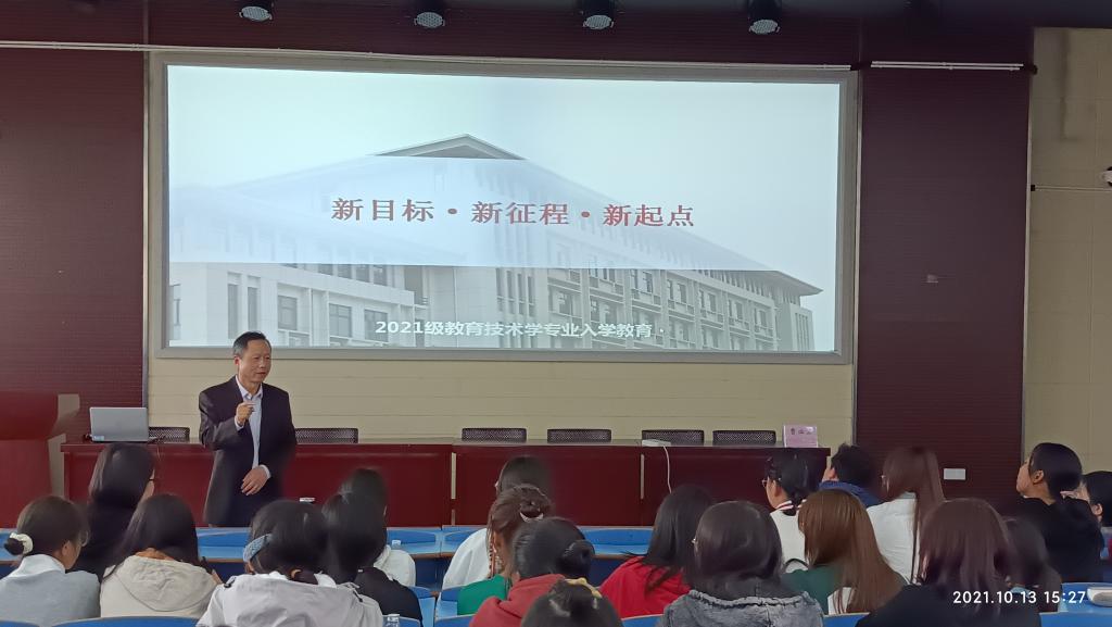 10月13日下午,教育技术学专业在龙山校区D111教室举行2021级新生入学教育暨师生见面会。专业负责人韩建华教授、全体专任教师出席,活动由教研室主任韦伟主持。