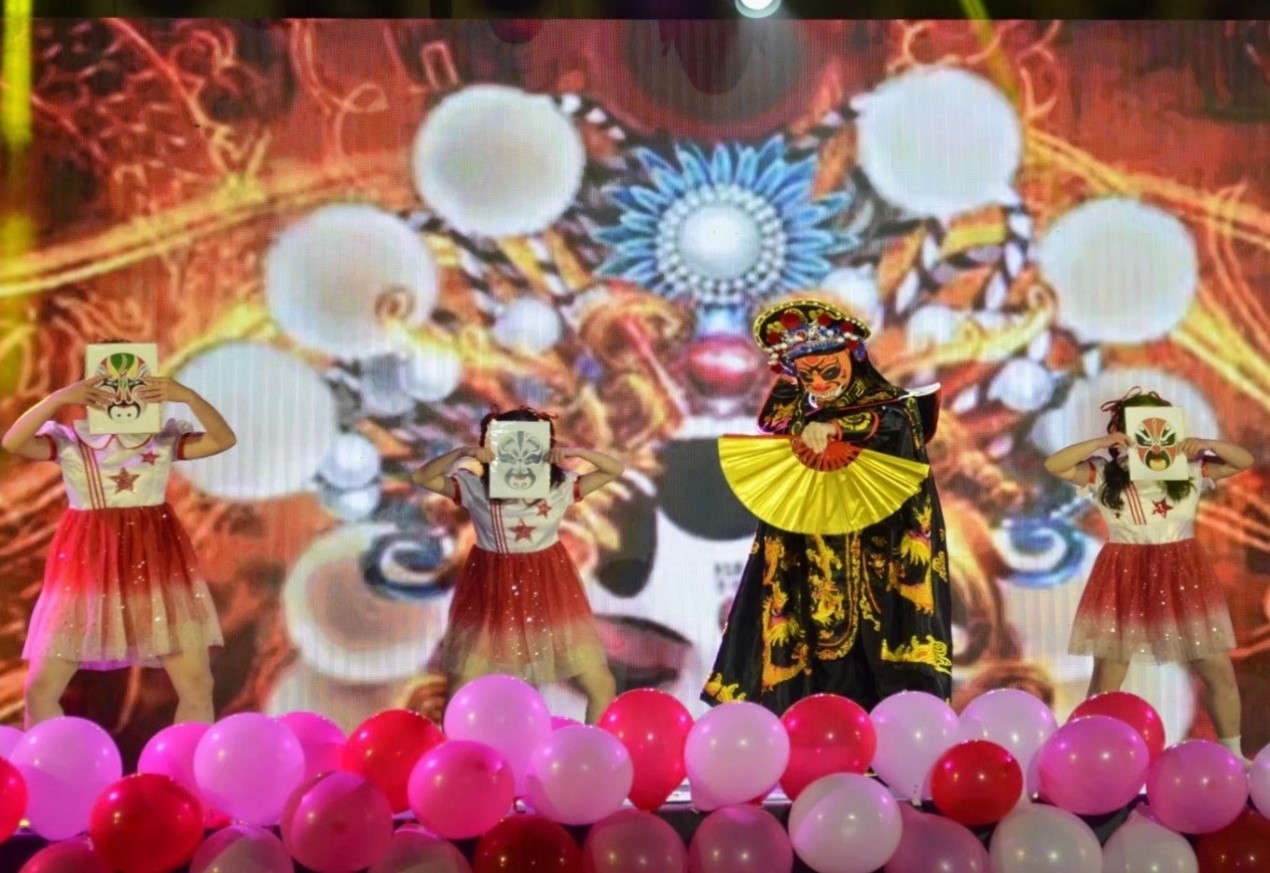 “校园里搭戏台,稀罕稀罕真稀罕。”儿童舞《校园里有大戏》将晚会推至高潮,川剧变脸令人眼前一亮。在折扇起落之间,在戏袍飞舞之下,在短短五分钟内,表演者学前教育专业2019(3)班(对口)的方贤连换了12个脸谱,8种颜色,引得观众掌声连连。为了此次表演,她练习了一个月左右。“变脸难度系数较高,所以得一直练,有时还会练到凌晨三点。”方贤表示希望同学们在观看了此次节目之后,可以走进戏曲,感受中华传统文化之美。