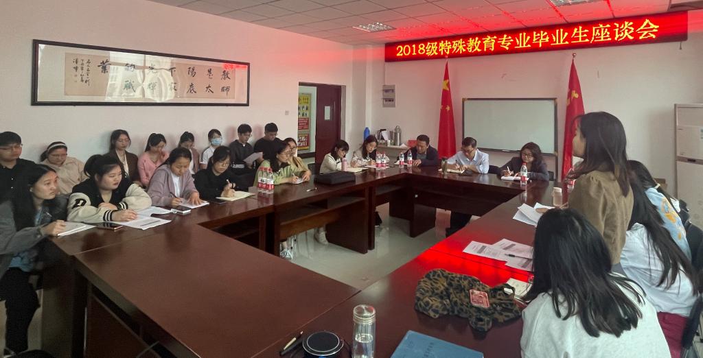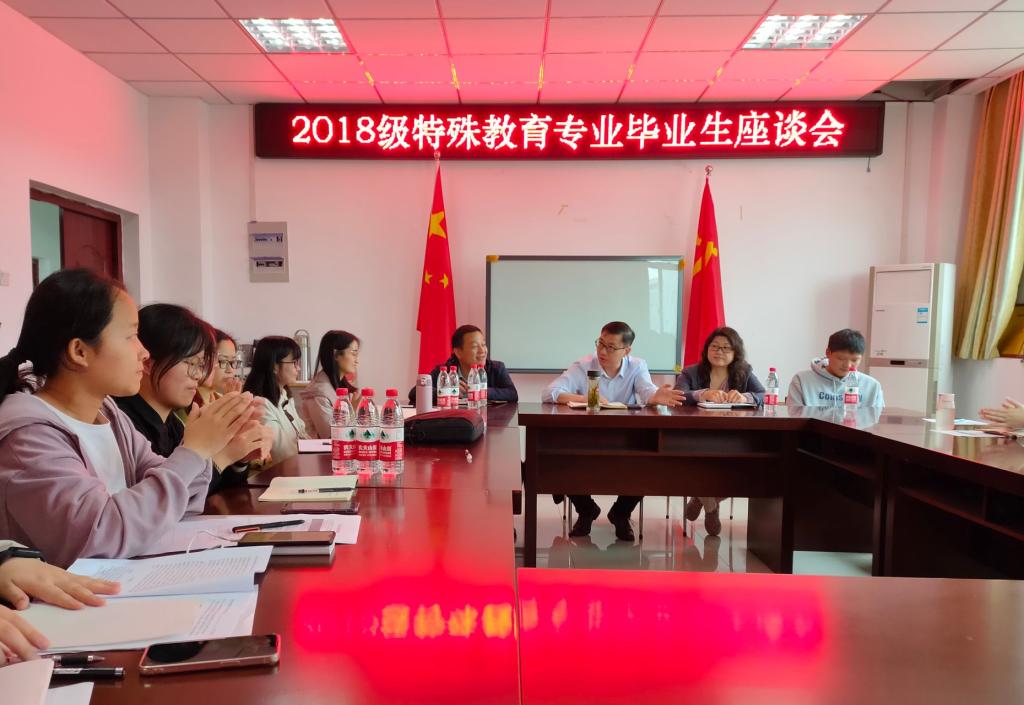 道阻且长,行则将至;行而不辍,未来可期。为深入贯彻“我为师生办实事”走深走实,更好地解答我院2018级特殊教育毕业生们的学习、生活以及未来就业等困惑,5月9日下午,我院在J202会议室开展了专业座谈会。学院党委副书记许世平主持会议,副院长王皓宇、特殊教育系主任郭启华、院团委负责人方泽宇、就业秘书汪洋洋以及特殊教育专业辅导员老师刘文雅、刘文丽、程敏芬等人出席,2018级特殊教育专业学生参加座谈会。