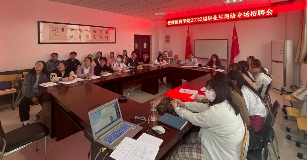 为进一步推进“我为师生办实事”走深走实,让本届毕业生学有所归,提升学院就业质量,5月9日下午,我院在J楼202会议室举办了2022届毕业生网络专场招聘会。学院党委副书记许世平、特殊教育系主任郭启华、学院就业秘书汪洋洋出席,学院近200名学生通过线上参加招聘会。