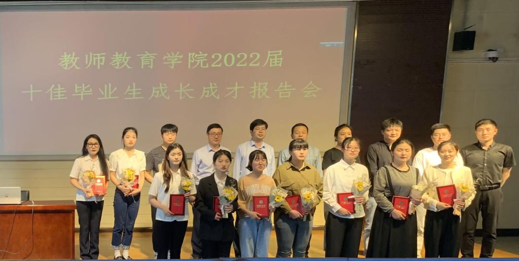 以梦为马,不负韶华;流年笑掷,未来可期。本次报告会旨在营造出崇尚先进、学习先进、争当先进的良好氛围,引领教院学子以“十佳毕业生”为榜样,向着红旗指引的方向,自觉加强思想道德修养,全面提高自身综合素质,以实干笃定前行,以奋斗开启未来。(撰稿:学生记者 张志伟、刘宇晴 摄影:学生记者 刘畅、潘庆青 审核:许世平)