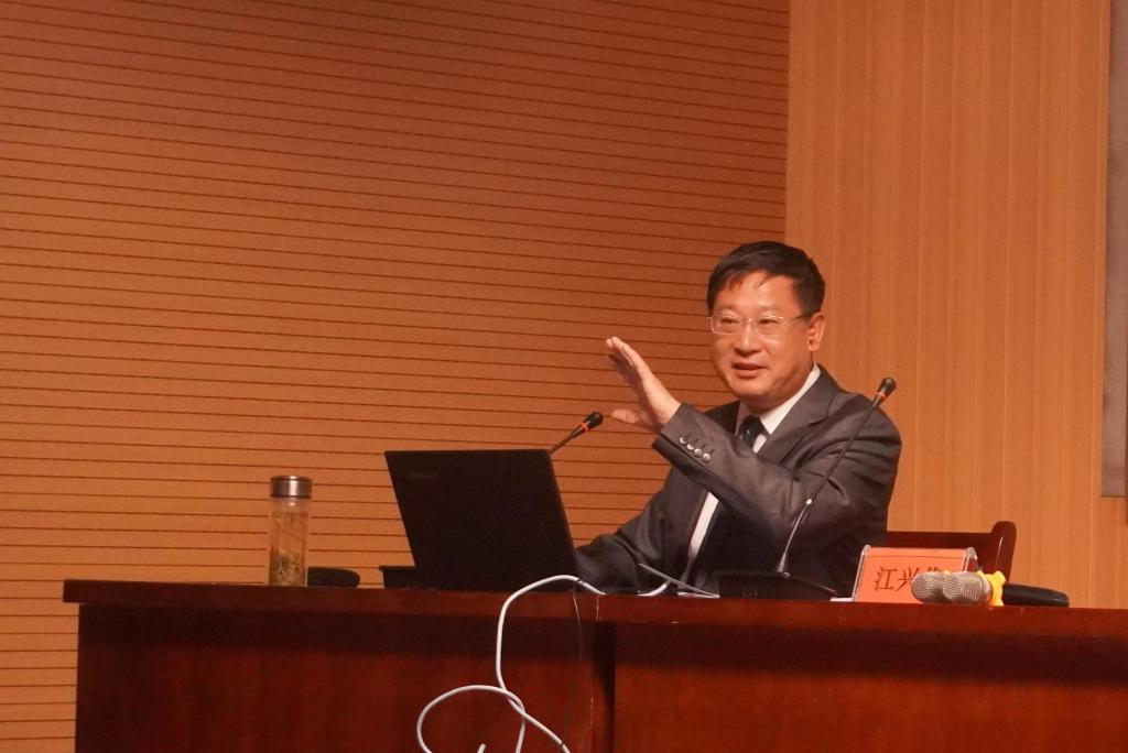 江兴代以“教育:是一种情怀”为题,从什么是理想的教育、应该过怎样的大学生活、如何追求教师的幸福三个方面进行深入阐述。他指出,教育是一种期待、一种关爱、一种宽容,一种付出。大学生要具备知识、见识、胆识和认识,大学要更加重视学生的胆识教育,增强学生的责任担当。教师有职业型教师、事业型教师和幸福型教师三种类型,他鼓励大家努力做幸福型的教师,做一名幸福型教师要有服务理念、创新理念、学习理念。