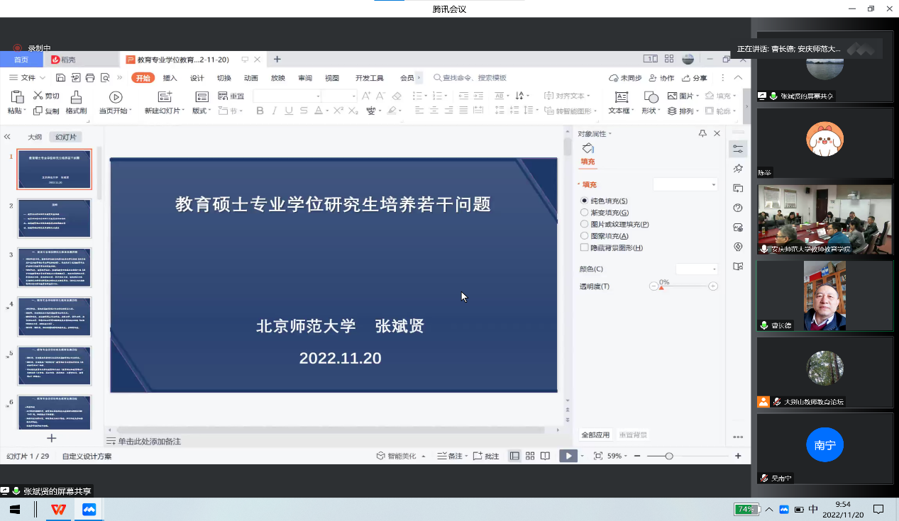 11月20日上午,我院邀请全国教育专业学位研究生教育指导委员会秘书长、教育部高校教学指导委员会(教育学类)副主任委员、中国教育学会教育史分会理事长、国家重大人才工程特聘教授、“万人计划”哲学社会科学领军人才、教育部跨世纪优秀人才、马工程首席专家、北京师范大学张斌贤教授在线上作了题为“教育硕士专业研究生培养的若干问题”的学术报告。报告会由教师教育学院执行院长吴云助主持,研究生院院长华秀梅、教师教育学院相关领导、学校教育硕士研究生导师及研究生共150余人参与此次学术活动。