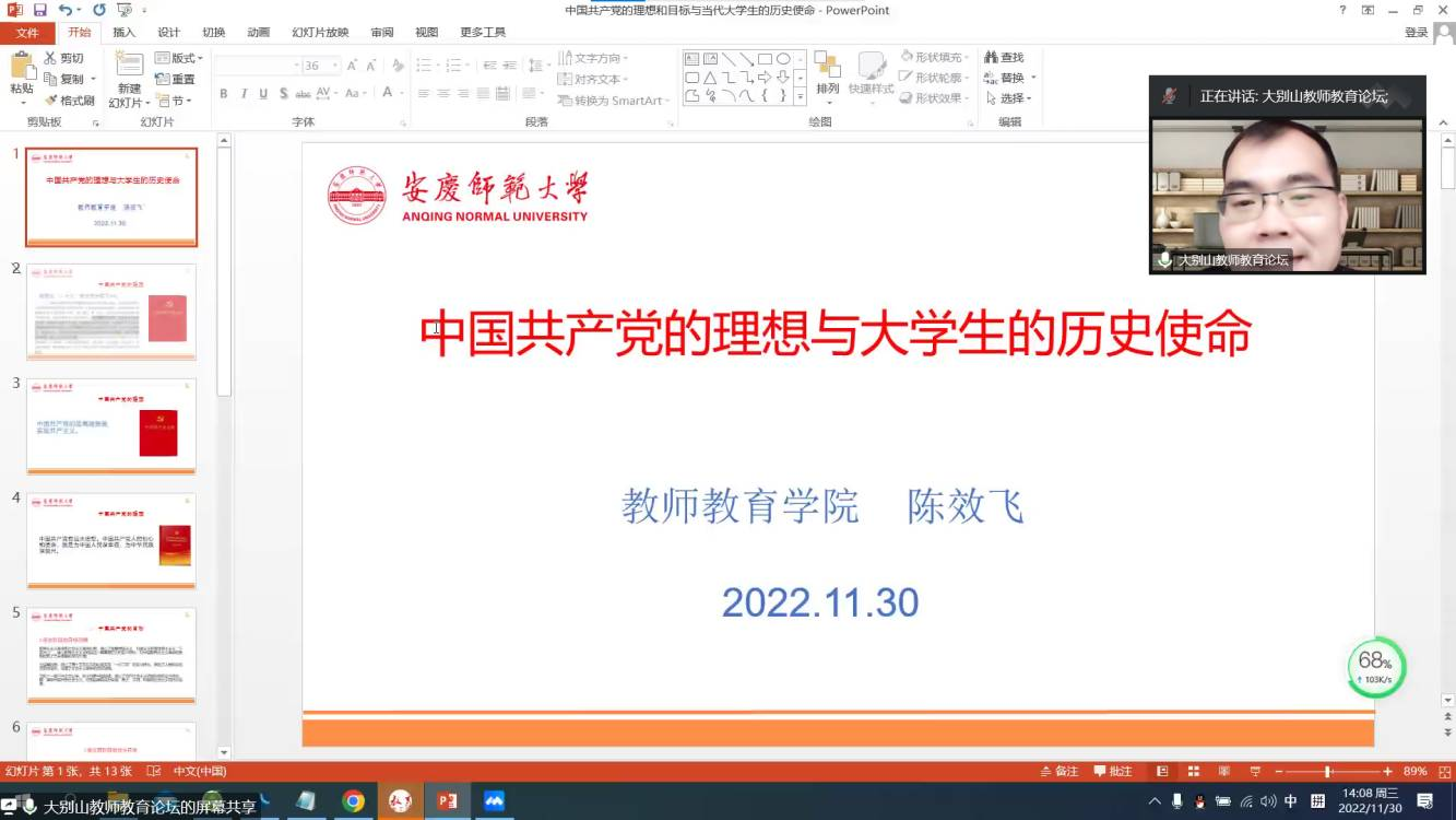 11月30日下午,学院党委党员、副院长陈效飞为第66期入党积极分子开展题为“中国共产党的理想与大学生的历史使命”专题党课,本次党课线上学习。