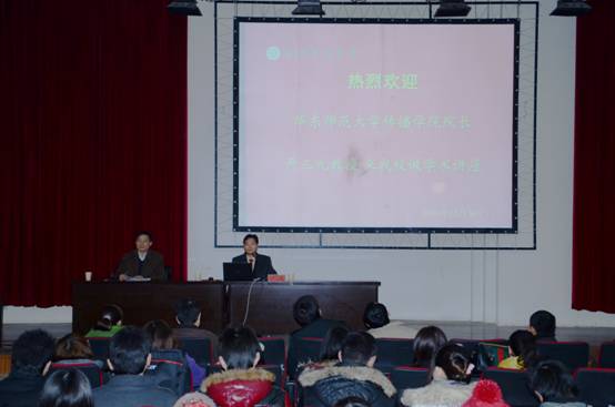 12月8日下午2点30分,华东师范大学传播学院院长、博士生导师严三九教授在安庆师范学院图书馆西报告厅,为教育学院广播电视新闻专业和文学院新闻学专业的师生做了《漫谈新媒体时代的信息失实》的专题演讲。