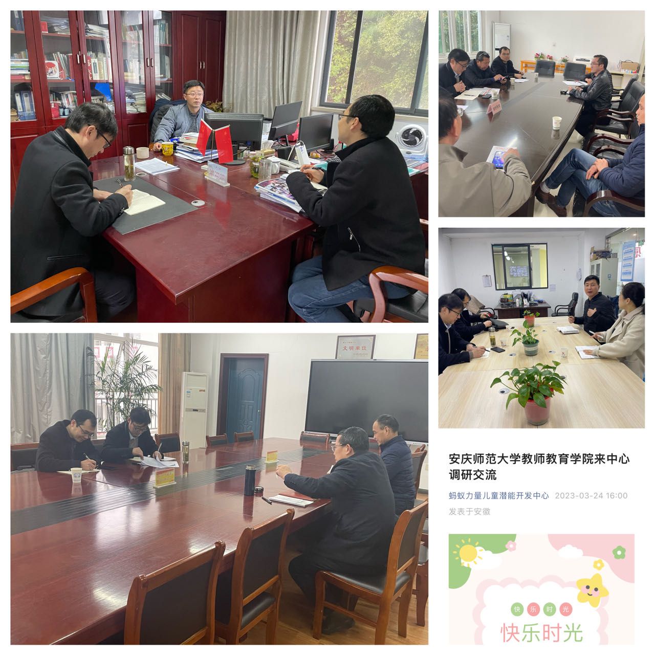 随后学院一行走访了祁门瑞园外国语学校、黄山蚂蚁力量儿童潜能开发中心。双方就急需人才培养、师资队伍建设、实习就业以及实习基地建设等方面达成初步合作意向,两家单位高度肯定了学校的办学质量,对毕业生给予了高度评价,承诺将参加3月29日的学校双选会。