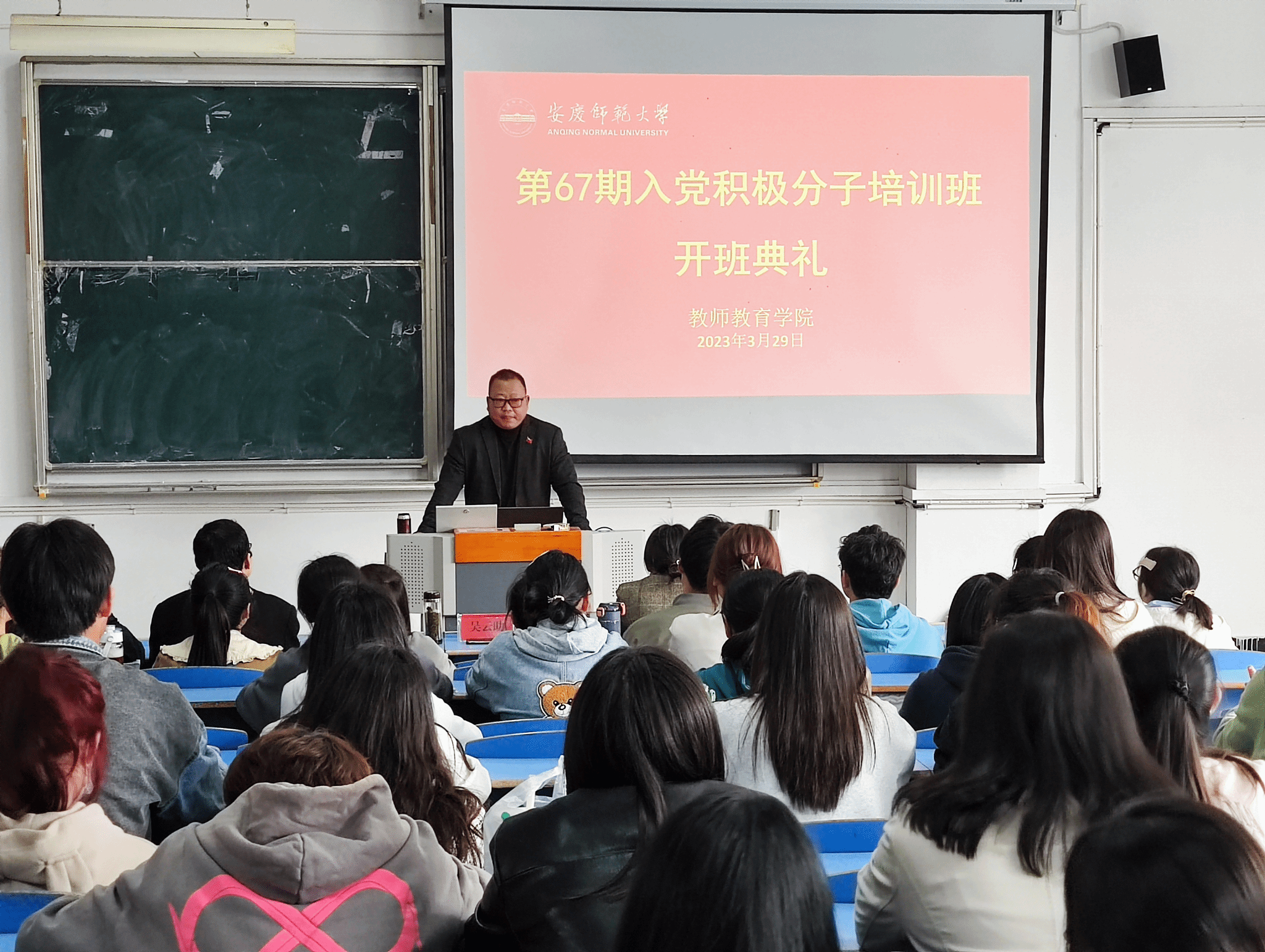 3月29日,教师教育学院举行第67期入党积极分子培训班开班仪式。院领导班子和各学生党支部书记及全体入党积极分子参加开班典礼。