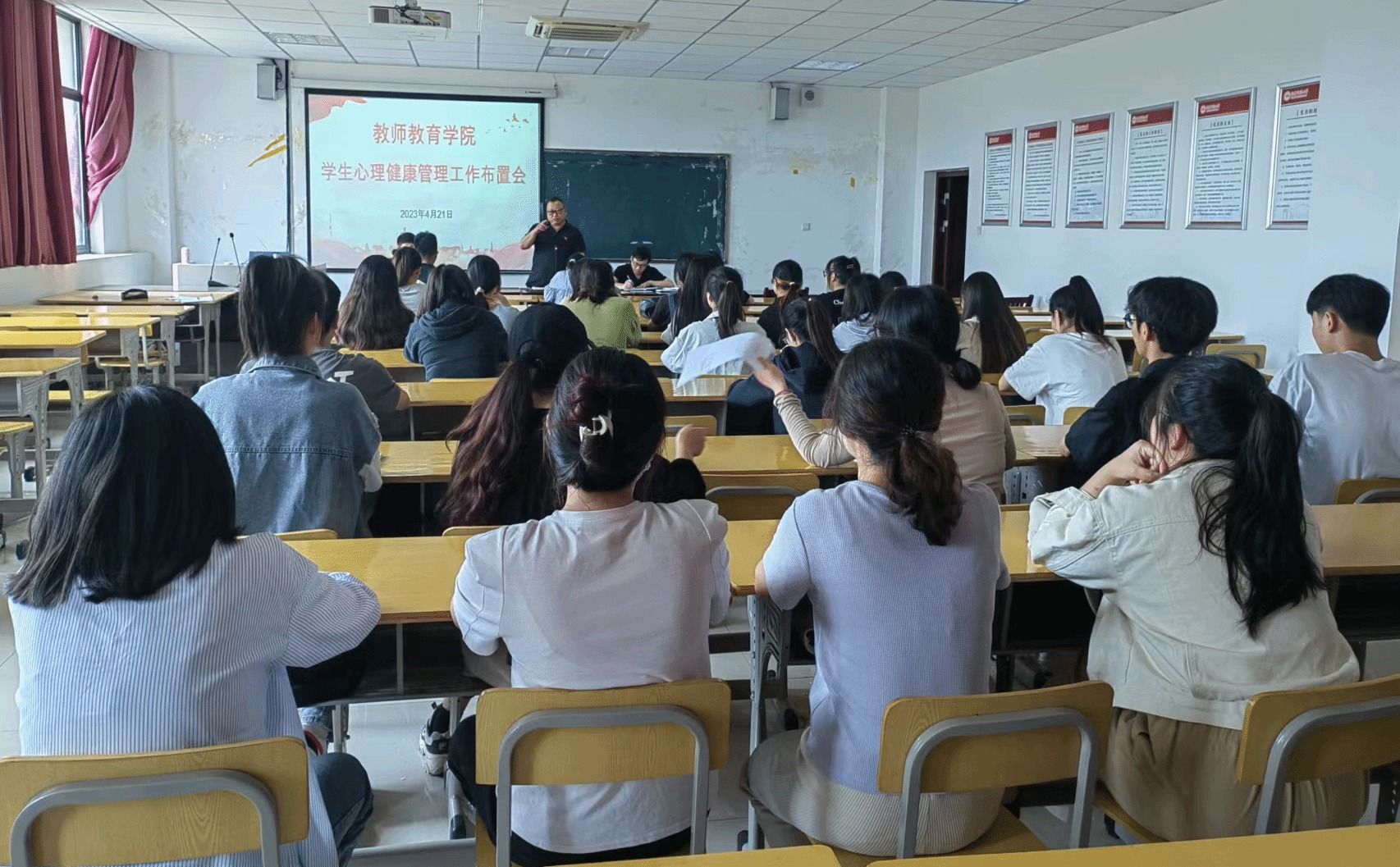 随着心理健康教育月的即将到来,为了更好服务大学生心理健康,4月21日中午,我院于J305开展学生心理健康教育管理工作布置会。此次会议由学院党委副书记许世平主持,院长吴云助讲话,心理健康专管老师汪洋洋对心理委员进行业务培训,学院全体各班级心理委员积极参加。