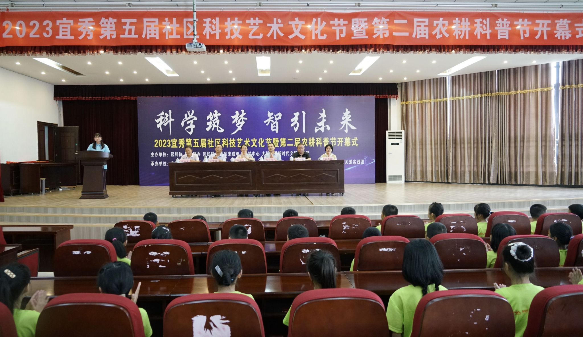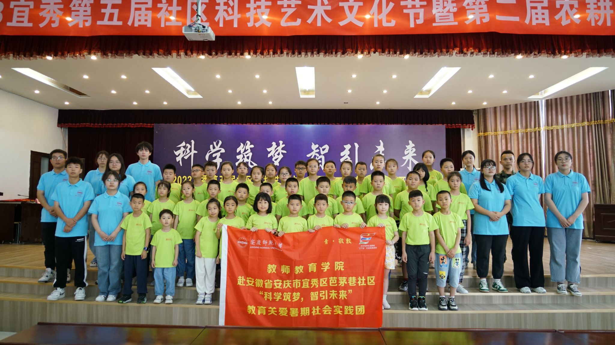 7月5日,教师教育学院“科学筑梦,智引未来”教育关爱实践团承办的2023宜秀第五届社区科技艺术文化节暨第二届农耕科普节开幕式在芭茅巷社区举行。学院副院长陈效飞、区委常委、宣传部长刘秀芳出席开幕式,区文明办、区科协、区妇联相关负责领导、学生家长代表参加开幕式。