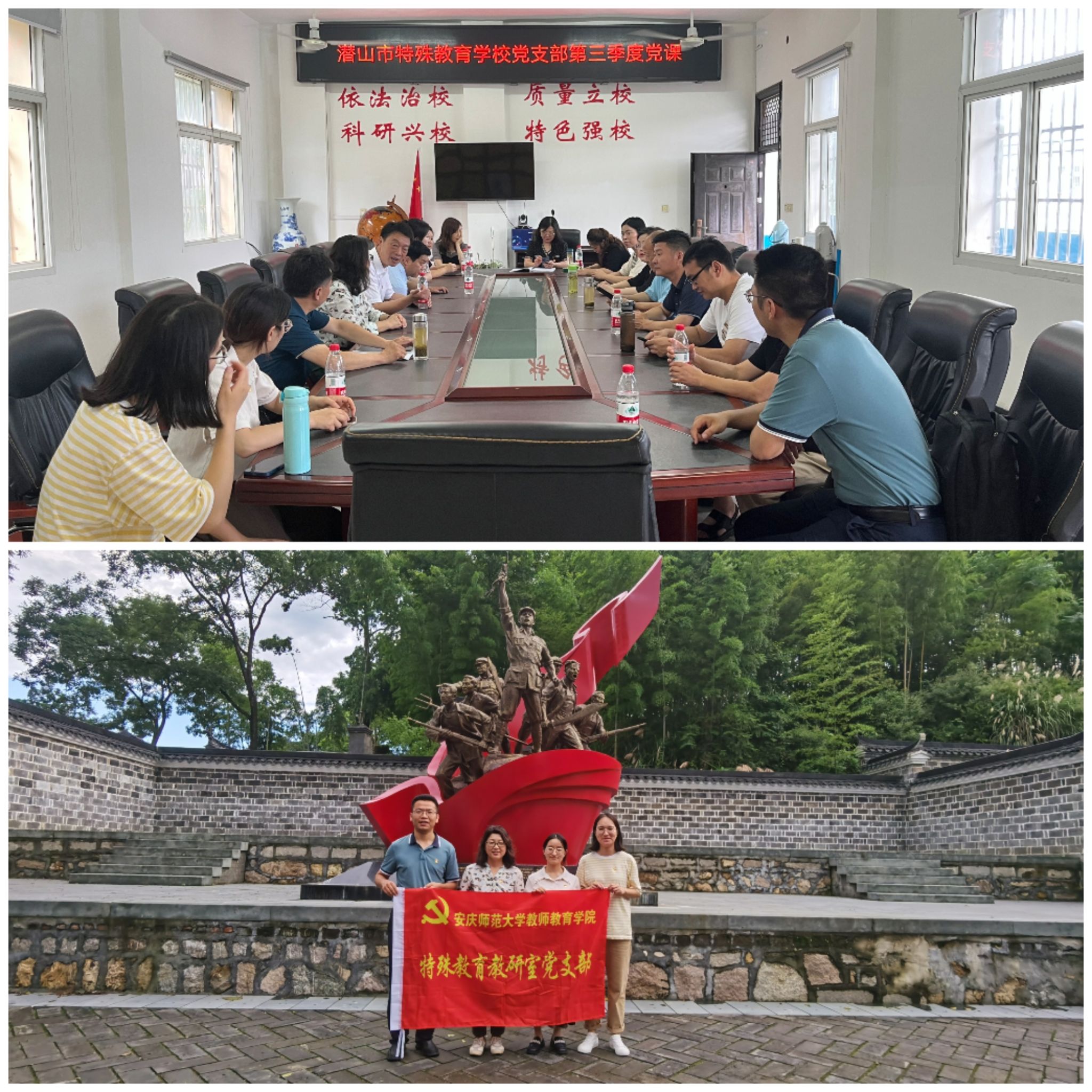 7月8日,特殊教育教研室党支部与潜山市特殊教育学校党支部共赴潜山市官庄镇开展主题党日活动。
