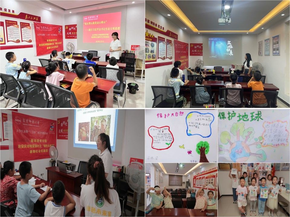 为践行绿色环保生态理念,铸就青山绿水美好家园,7月3日-9日,伟德bv1946教师教育学院研究生“绿色未来家”教育关爱实践团在安庆市迎江区程家墩社区开展为期7天的暑期“三下乡”活动,为社区提供青少年儿童托管公益服务。