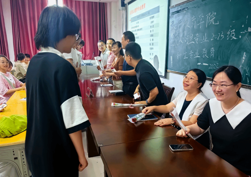 一支粉笔,两袖清风,三尺讲台,四季晴雨。会后,应心专业新生手捧鲜花,为可爱可敬的老师们送上最真挚的祝福,预祝老师们教师节快乐。一声声“老师,祝您节日快乐!”“老师,您辛苦了!”“老师,祝您身体健康!”表达了同学们对老师的敬爱、感恩及真挚祝福。阵阵花香沁人心脾,声声祝福感人肺腑,在秋日的阳光中,每一位老师都倍感温暖,满面笑容。鲜花寄情,寄不尽学子的拳拳感恩心;共沐晨光,感受尊师爱生的教育氛围。(撰稿:刘慧宁、顾湘 摄影:洪俊杰 审核:陈效飞)