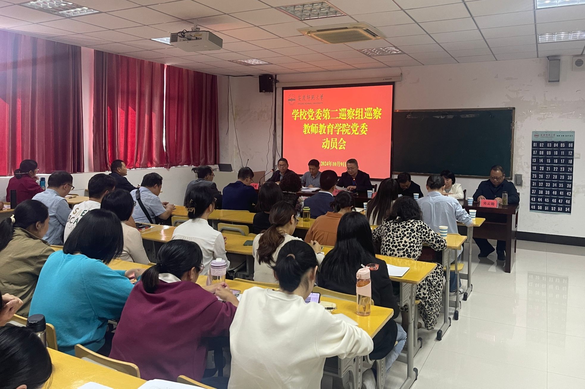 10月9日,二届党委第四轮巡察第二巡察组巡察教师教育学院党委动员会召开。校党委书记李福华出席会议并作动员讲话。党委第二巡察组全体成员、党委巡察办主要负责人、学院党委领导班子成员和全体教职工、学生代表参加会议。会议由学院党委书记何孔蛟主持。
