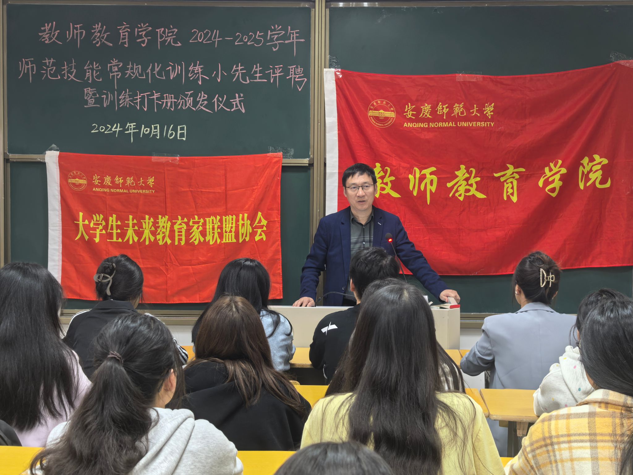 10月16日,我院于J104教室开展2024-2025学年师范生技能常态化训练“小先生”评聘暨训练打卡册颁发仪式。院党委副书记许世平、院团委副书记姚强诚、新聘任20余名“小先生”及2024级新生班委到场参加。活动由大学生未来教育家协会会长王睿主持。