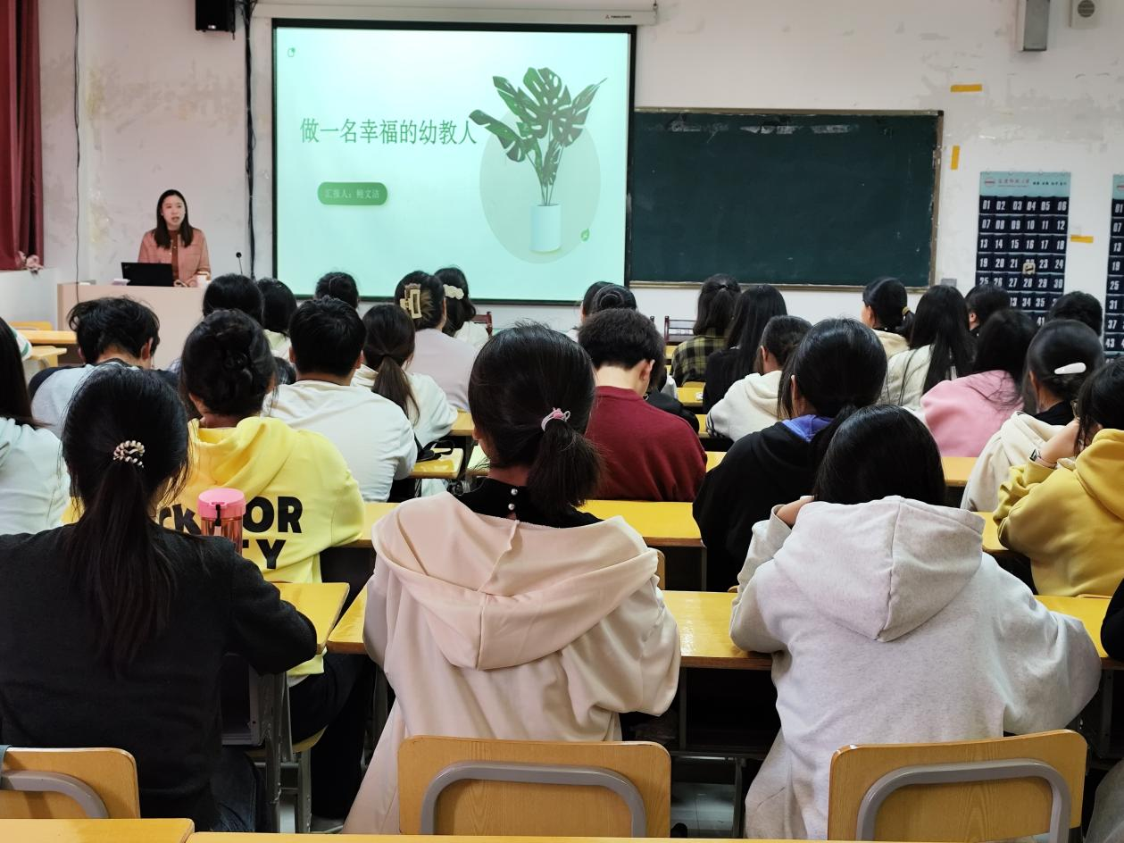 11月12日,安徽省教坛新星、安庆市墨子巷幼儿园本部执行园长鲍文洁做客红色园丁大讲坛,作题为“做一名幸福的幼教人”的学术报告。报告会由张亭亭老师主持,我院学前教育专业部分教师、学生参加了报告会。
