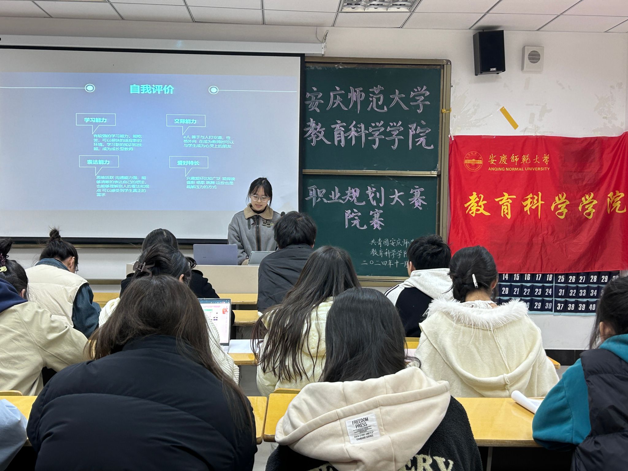 11月28日晚,我院于J305教室举办大学生职业规划大赛院赛。经前期动员及初步筛选,共有13名选手进入院赛。院团委副书记姚强诚、辅导员郭静文及3名学生会干部担任评委。