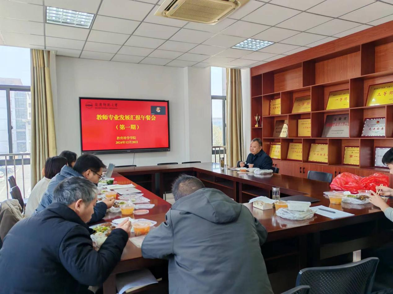 12月20日中午,伟德源自英国始于1946举行第一期教师专业发展汇报午餐会,院领导吴云助主持会议,公共教育学教研室全体教师参会。