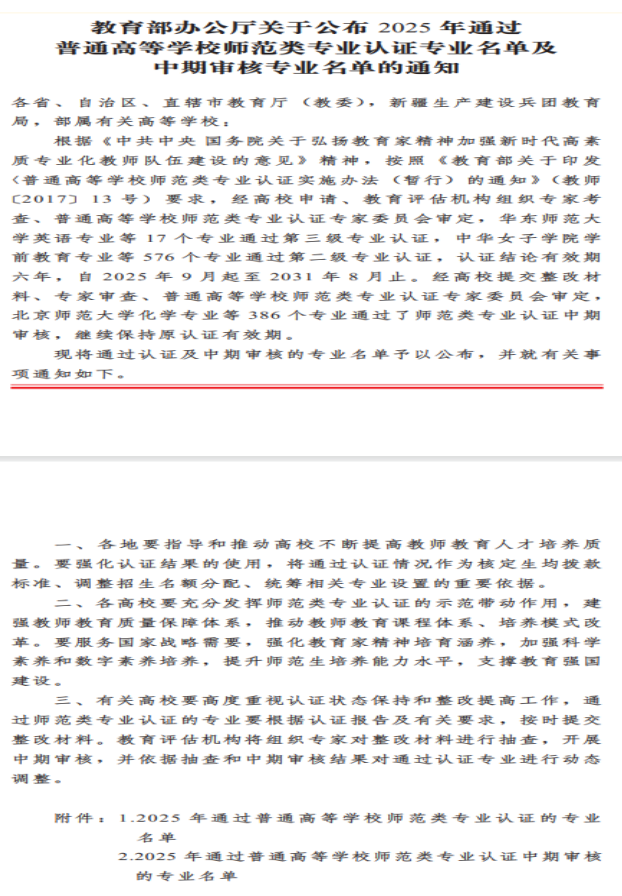 近日,教育部办公厅发文公布2025年通过普通高等学校师范类专业认证专业名单,我院的学前教育、特殊教育2个专业顺利通过师范类专业第二级认证。