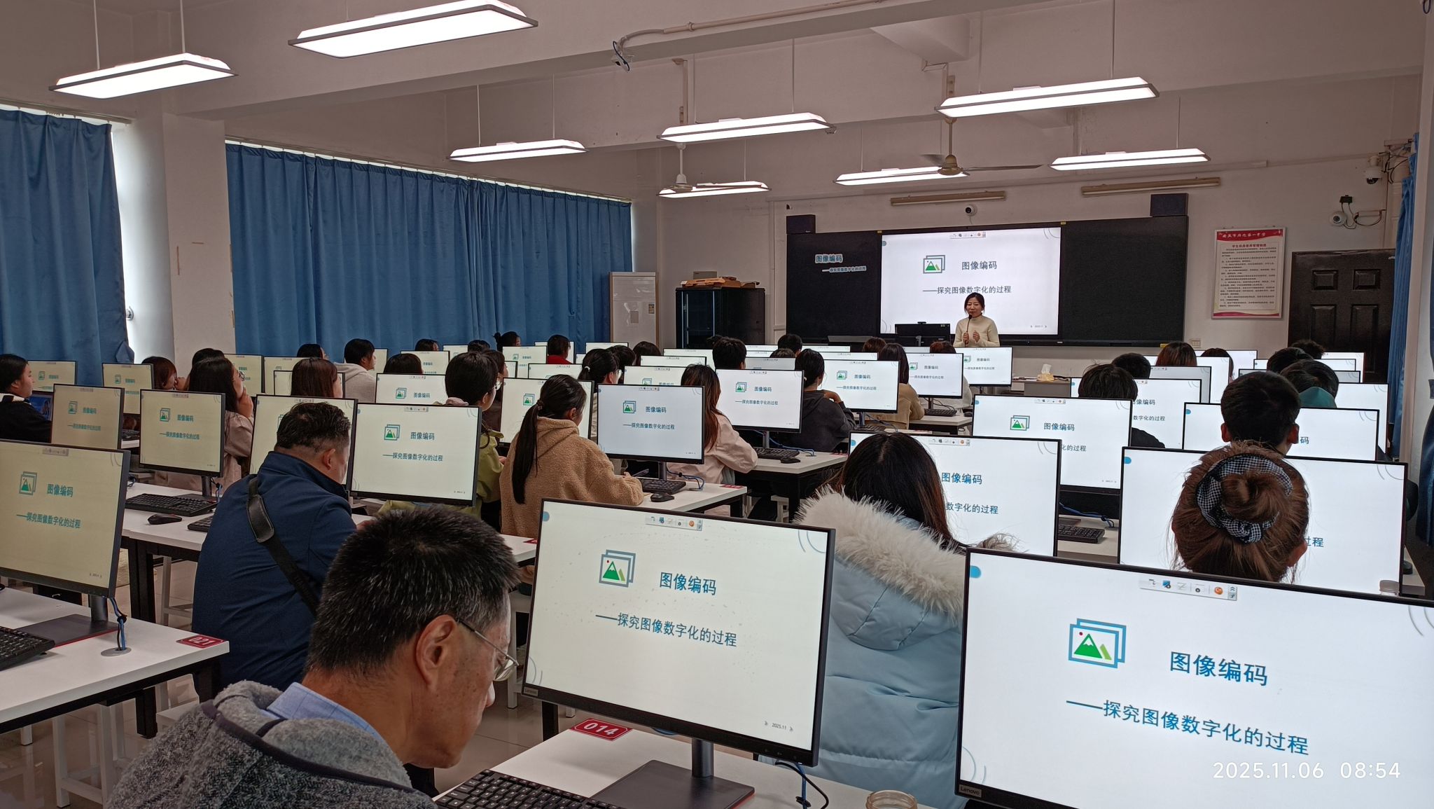 石化一中为本次教育实践活动做了精心部署和安排,通过“观摩学习+实践授课+点评总结”的全流程体验,让师生沉浸式感受一线教育教学场景。第一个环节是俞婷老师为本科生、研究生上了一堂精彩的教学示范课。俞婷先后在安徽省、全国高中信息技术优质课等诸多高级别比赛中获一等奖、二等奖多次,具有丰富的教学经验和出色的教学水平。她以“图像编码”为题,通过四项探究活动引导学生亲手操作图像数字化过程;学生提交实验成果后,系统即时给予个性化反馈,并布置针对性课后任务,让抽象的理论知识在实践中“活”了起来。课堂教学的主线非常清晰,活动设计非常精巧,利用生成式AI设计的模拟仿真平台和学习评价网页也让现场师生大开眼界,受益匪浅。
