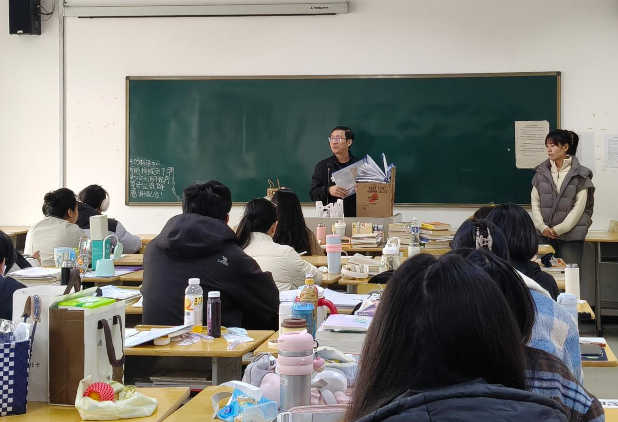 许世平代表学院对我院学子长期以来刻苦复习、坚持备考的表现给予充分肯定。他鼓励大家:“在最后冲刺阶段,同学们要兼顾复习效率与身心健康,保持平稳心态。大家不仅要坚持备考,还要合理安排作息,学院会一直关注并支持大家的备考过程。”勉励学生们守住备考初心、坚定冲刺信心。