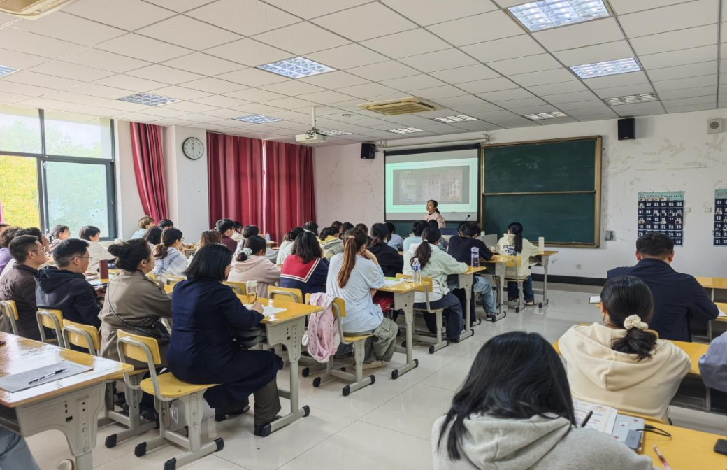 在J219 教室举行,由学院王婷教授主讲《课程与教学论》,课堂上,王婷教学逻辑严谨、讲解深入浅出,充分展现了精湛的教学技艺与良好的课堂风貌。新进教师们认真聆听、细致记录,认真学习课堂设计、师生互动、知识点讲授等实用教学方法,在观摩中找差距、学经验、促提升。