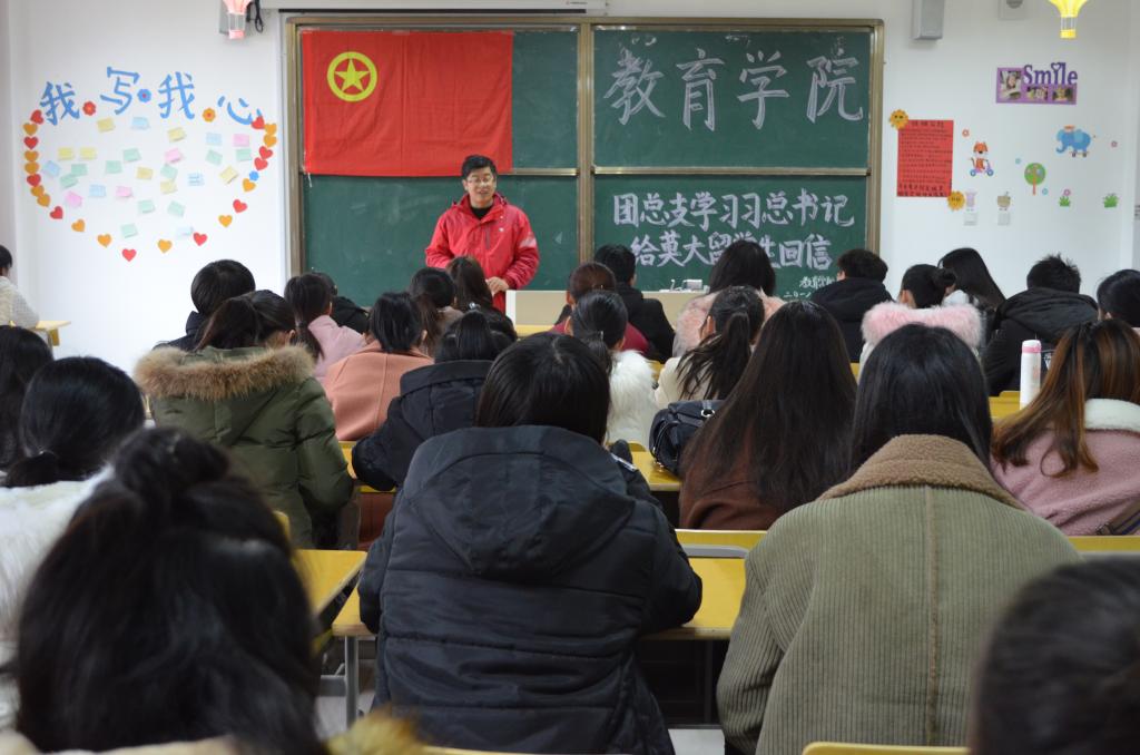2018年1月2日中午十二点半,教育学院学习习总书记给莫大中国留学生回信座谈会在J楼221教室召开。会议由学院团总支严峻老师主持召开,教育学院团总支、主席团成员及各团支部主要团干到场学习。