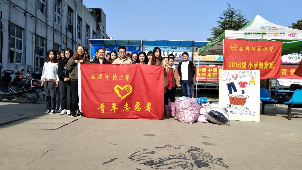3月23日,为进一步弘扬雷锋精神和“奉献、友爱、互助、进步”的志愿服务精神,以实际行动书写新时代的雷锋故事。伟德bv1946教育学院2016级小学教育1班团支部与学校大学生青年志愿者协会协同合作,在安苑外开展爱心捐赠活动。