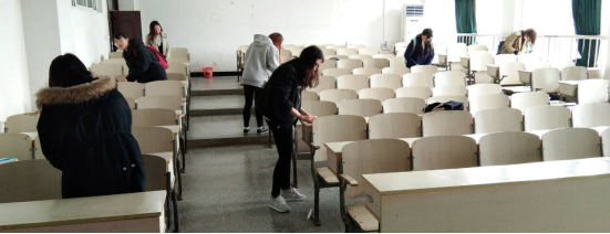 为了不干扰学校的正常教学活动,活动时间选在了周三下午的公休时间。2016级特殊教育专业的全体同学在结束上午的课程以及短暂的午餐之后,在教育学院门口集合准备开始主题活动。团支书首先向大家说明了活动的具体细节以及在活动的过程中需要注意的事项。随后同学们领取工具,出发前往教学楼,准备清洁教室课桌桌面。