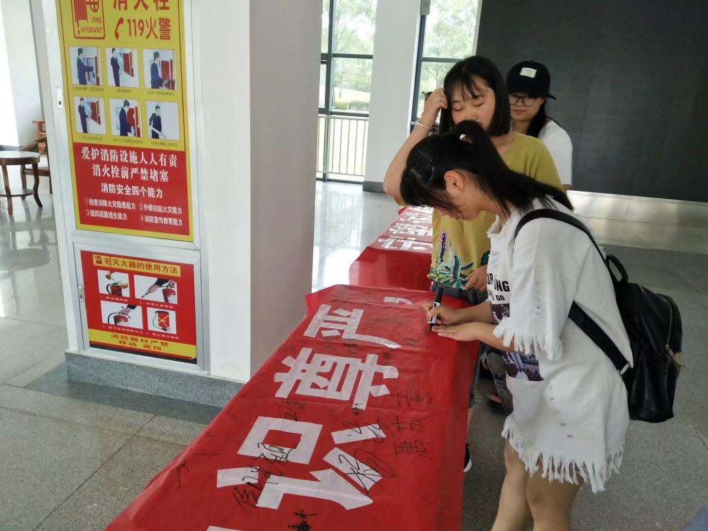 期末考试临近,为达到考试最终的目的,考出学生真实的水平,2018年6月28日上午两节课后,教师教育学院分团委学生会学习实践部向全院学生发起诚信考试的倡议,在教师教育学院一楼大厅开展诚信考试签名活动。教师教育学院的同学们纷纷响应,参加本次活动,用笔杆写下了自己的姓名。