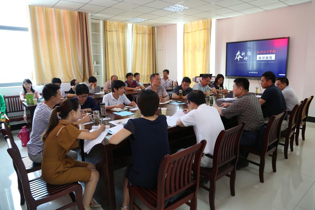 汇报会上,首先曹长德对评估专家莅临教师教育学院开展本科教学工作检查、指导表示感谢,并按照评估工作要求,逐一向专家们介绍了参会人员情况。其次汪洋从伟德概况、定位与目标、师资队伍、教学资源、培养过程、学生发展、质量保障、特色发展等方面总结汇报了学院本科教学工作。接着专家组调阅了部分教师的2017-2018学年试卷、抽阅了2018届毕业论文、补缓考试卷等材料;现场查看了学院各专业的实验室、实训室以及资料室,并不时随机询问和访谈;仔细查看了自评报告和相关支撑材料。