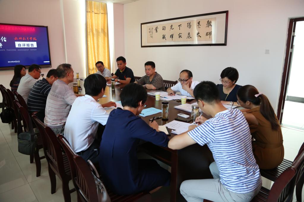 8月2日,校本科教学审核评估第二组检查组由发展规划处处长陈世庆为组长,校内专家潘锦云、程玉胜、汪德进、彭芳珍等一行五人来教师教育学院检查评估本科教学工作。教师教育学院党政领导曹长德、许世平、汪洋,各专业负责人、教研室主任、实验室主任、党政办、学工办、教学科研办、团总支等人员参加汇报会。汇报会由曹长德主持。
