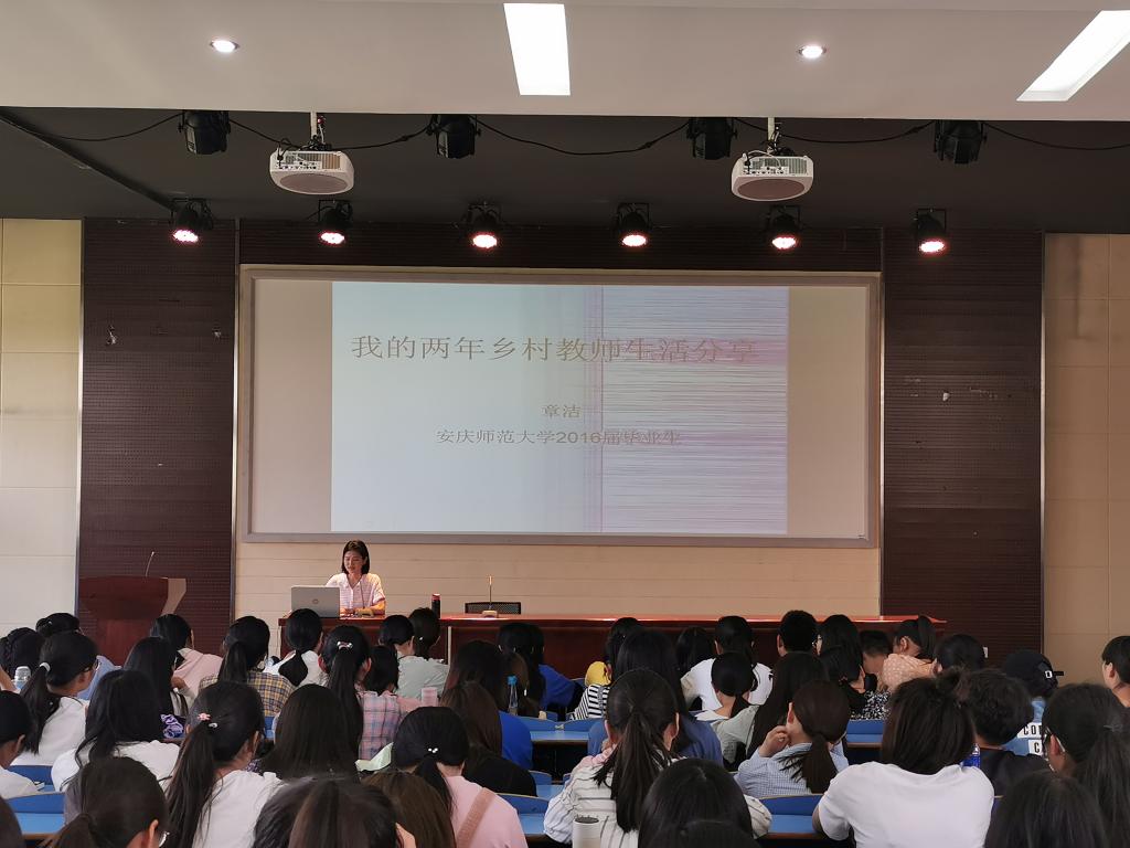 讲座上,章洁老师分享了自己的教学经历和任务。她坦言作为一名乡村教师,在教育资源匮乏的地区,教学负担也是一大问题。工作虽然忙碌,但是学生才是她快乐的源泉。章洁老师举例生活中学生的调皮行为,告诉我们教师应开发孩子的潜能,悉心引导学生,做到因材施教。她提出,作为教师要有阳光的心态和宽广的胸怀,要时刻充满干劲,坦然面对生活中的压力和挫折。最后她提到了与学生、同事的相处模式,对工作的感悟,以及对在校大学生的一些建议。