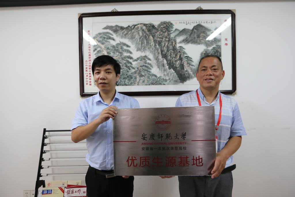 为扩大我校招生宣传工作的影响力,根据学校部署,6月20日,汪洋副院长带领赵子刚、范华老师一行三人赴歙县进行招生宣传。在歙州中学和歙县二中,汪洋一行与两校领导、老师进行了亲切的会谈,详细讲解了我校的招生优惠政策并回答了提问。汪洋还对《伟德bv1946优质生源基地合作协议书》做了说明,两校校长在《伟德bv1946优质生源基地协议书》上签了字,汪洋代表学校授予两校“安庆师范大学优质生源基地”牌匾。