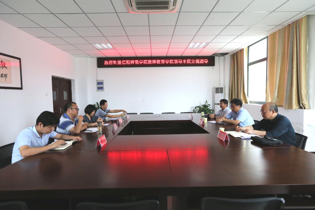 6月28日,信阳师范学院教师教育学院副院长付永昌教授一行3人到我院考察交流。学院院长吴云助、副书记许世平、副院长汪洋热情接待了付永昌一行。