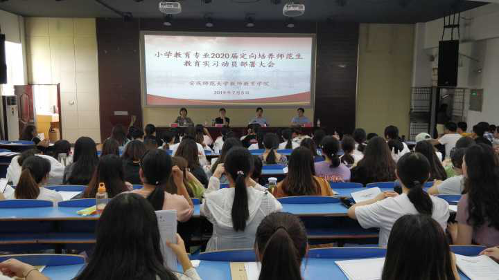 7月5日,学院小学教育专业2020届定向培养师范生教育实习动员部署大会在多媒体报告厅D111举行。学院副书记许世平、副院长汪洋、小学教育专业负责人王爱菊、小学教育专业辅导员陈安定、孙群以及2020届全体定向培养师范生参加大会。