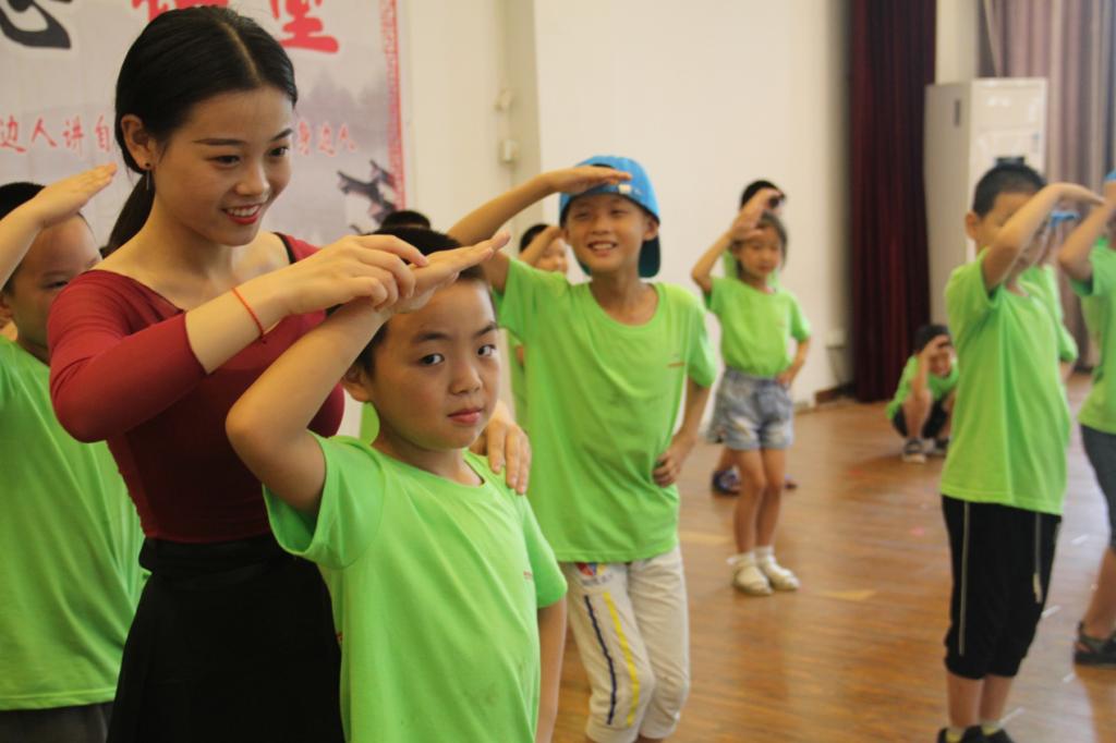“同学们,你们当中有多少人之前学过舞蹈呀?”在正式课程开始前,陈芷怡老师并没有直接就开始教授舞蹈,她选择了因材施教,先询问了一下孩子们的舞蹈学习时间及经历,然后根据不同孩子们的舞蹈功底对孩子们进行了分组,并从中挑选了几个舞蹈功底比较好的孩子作为领舞。