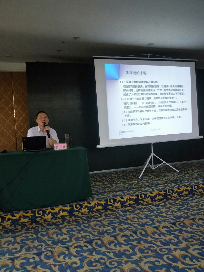 曹长德教授围绕“幼儿园教师为什么要做研究”“幼儿园教师研究什么”“幼儿教师如何研究”“课题申报书的如何填写”等四大标志性问题,进一步阐述了幼儿园园长、教师开展课题研究的意义,研究课题的选择、设计应当注意的问题,以及课题申报书的撰写技巧等。
