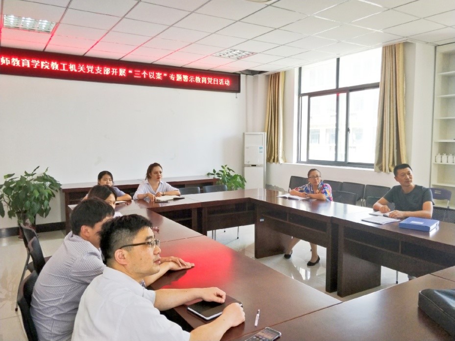 9月4日中午,教工机关党支部开展了专题学习“三个以案”警示教育会议精神党日活动。支部书记方申荣带领支部党员学习了上级党委关于“三个以案”警示教育精神,观看了《永远在路上》警示教育片,并开展了集中研讨。