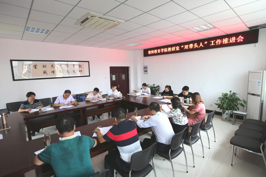 9月6日上午,教师教育学院在二楼会议室召开教学工作会议暨教研室主任“双带头人”工作推进会。学院党政领导曹长德、许世平、汪洋以及学院教学工作委员会成员、专业负责人、教研室主任参加了会议,会议由教学工作委员会主任韩建华教授主持。