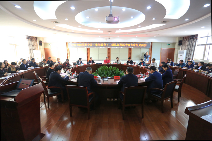 随后,我校小学教育专业负责人李义胜教授对自评报告做补充汇报。在循证环节,专家组就教师教育教师队伍建设、师范生教育情怀等问题,与我校相关职能部门负责人进行了现场交流。