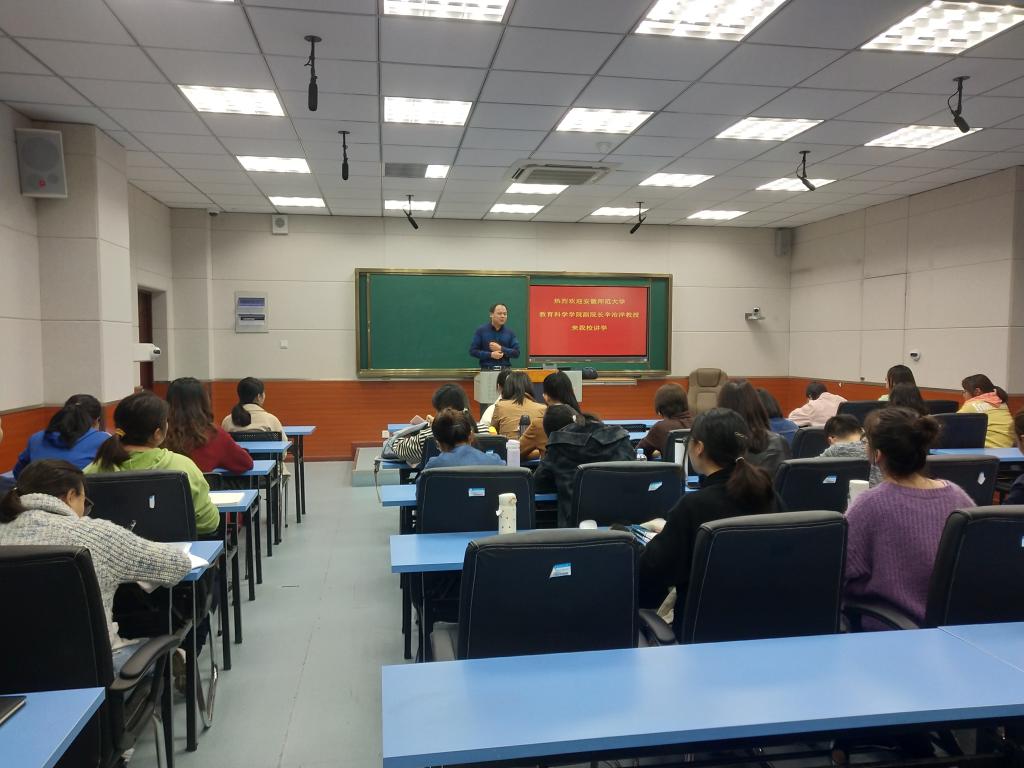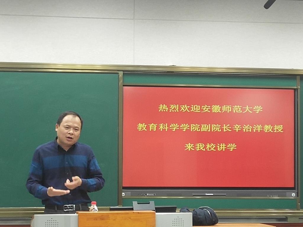 11月7日下午,应教师教育学院邀请,安徽师范大学伟德源自英国始于1946副院长辛治洋教授在J511教室做了一场题为“例谈教育科研的问题与方法”学术讲座。学院全体研究生及部分教师聆听了讲座,此次报告由教师教育学院副院长汪洋主持。